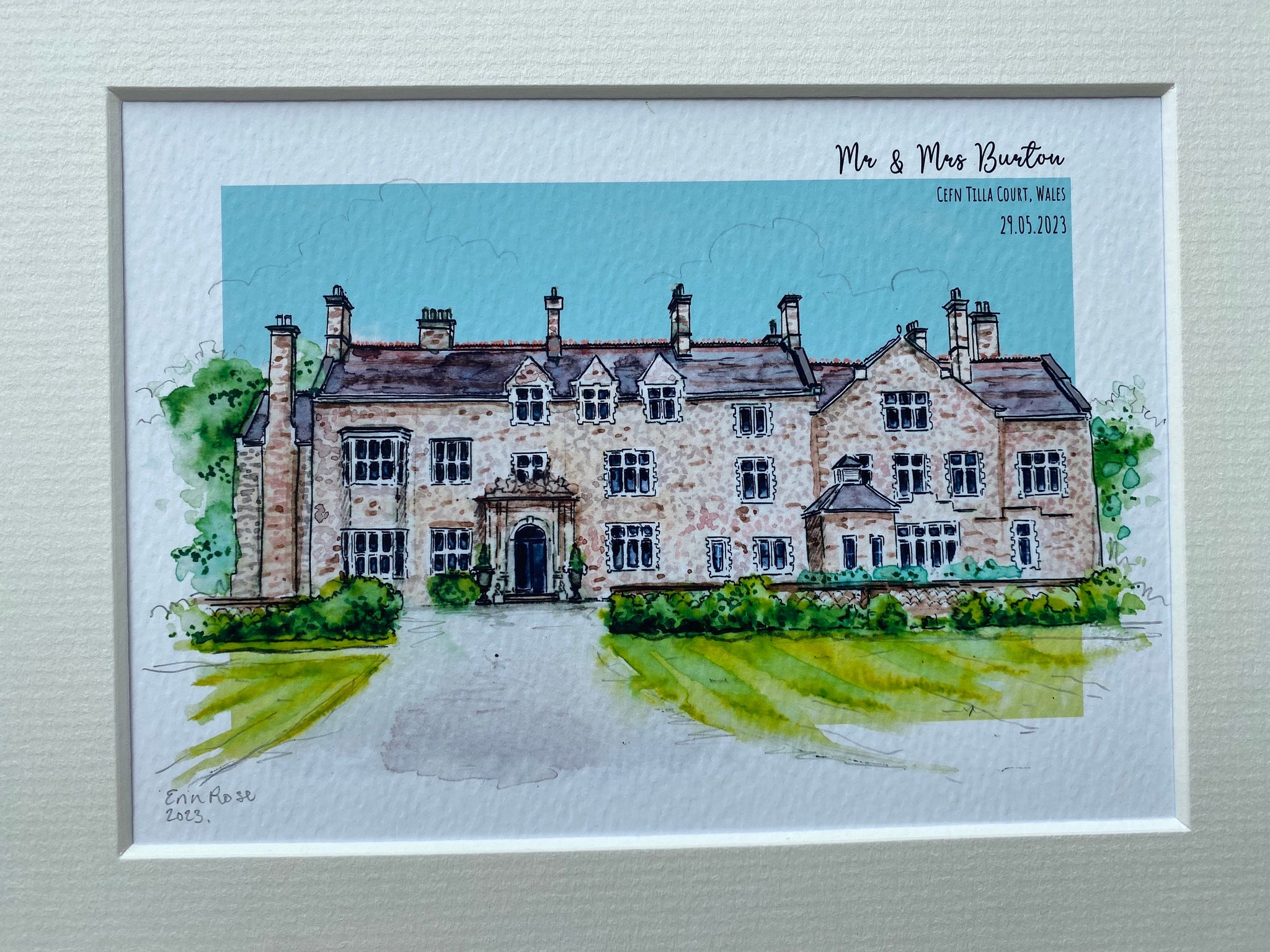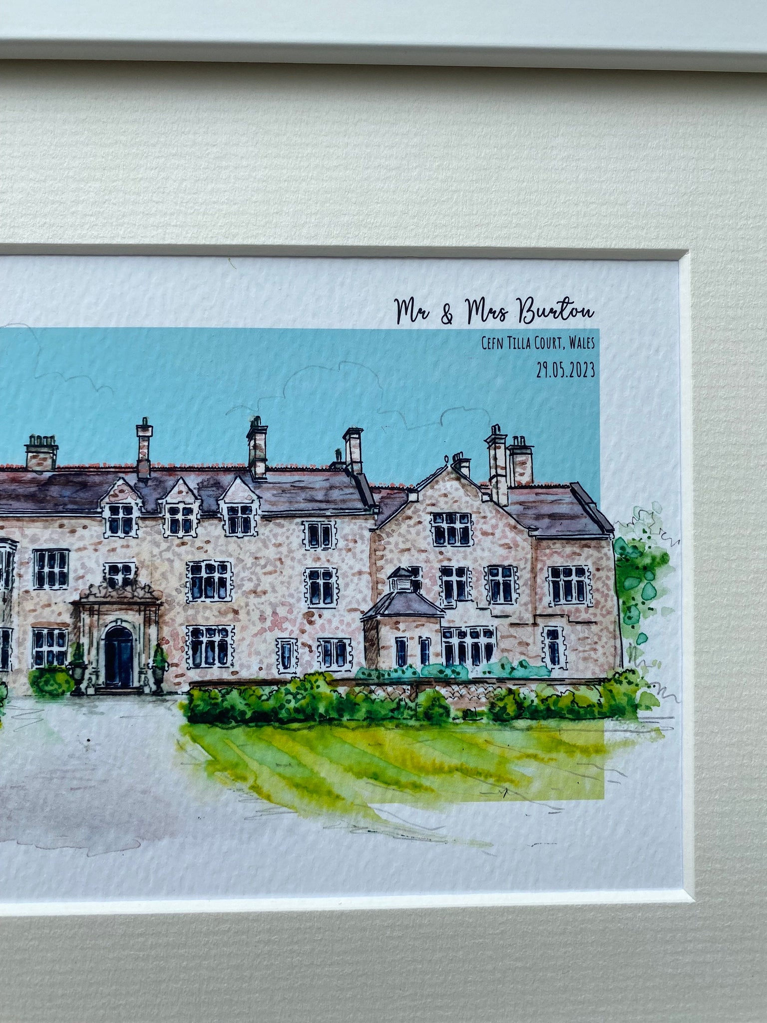 Personalised Cefn Tilla Court, Wales Art Giclee Print - Cefn Tilla Court Wedding Venue - Wedding Wall Art - Cefn Tilla Court Wedding Present
