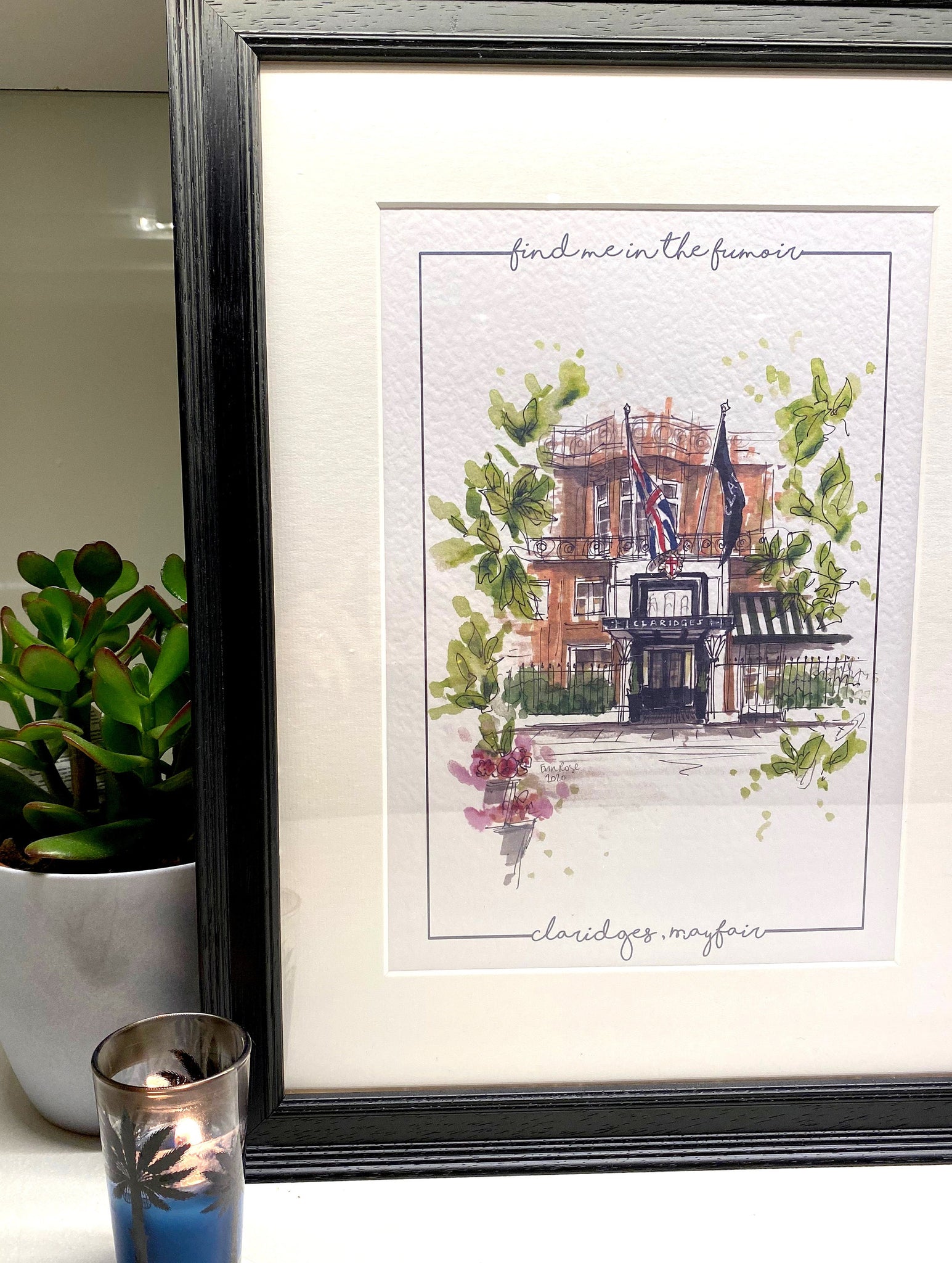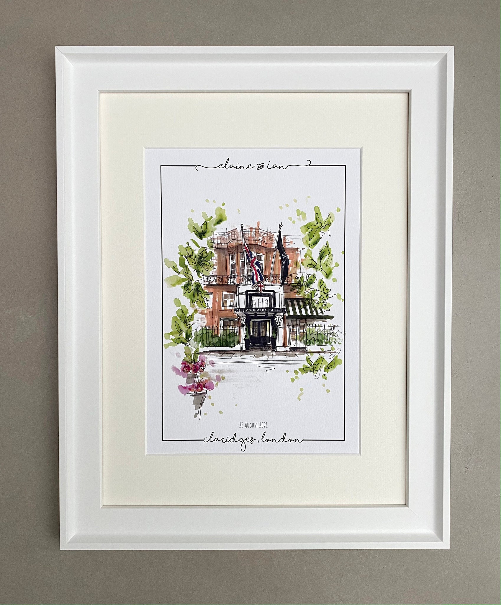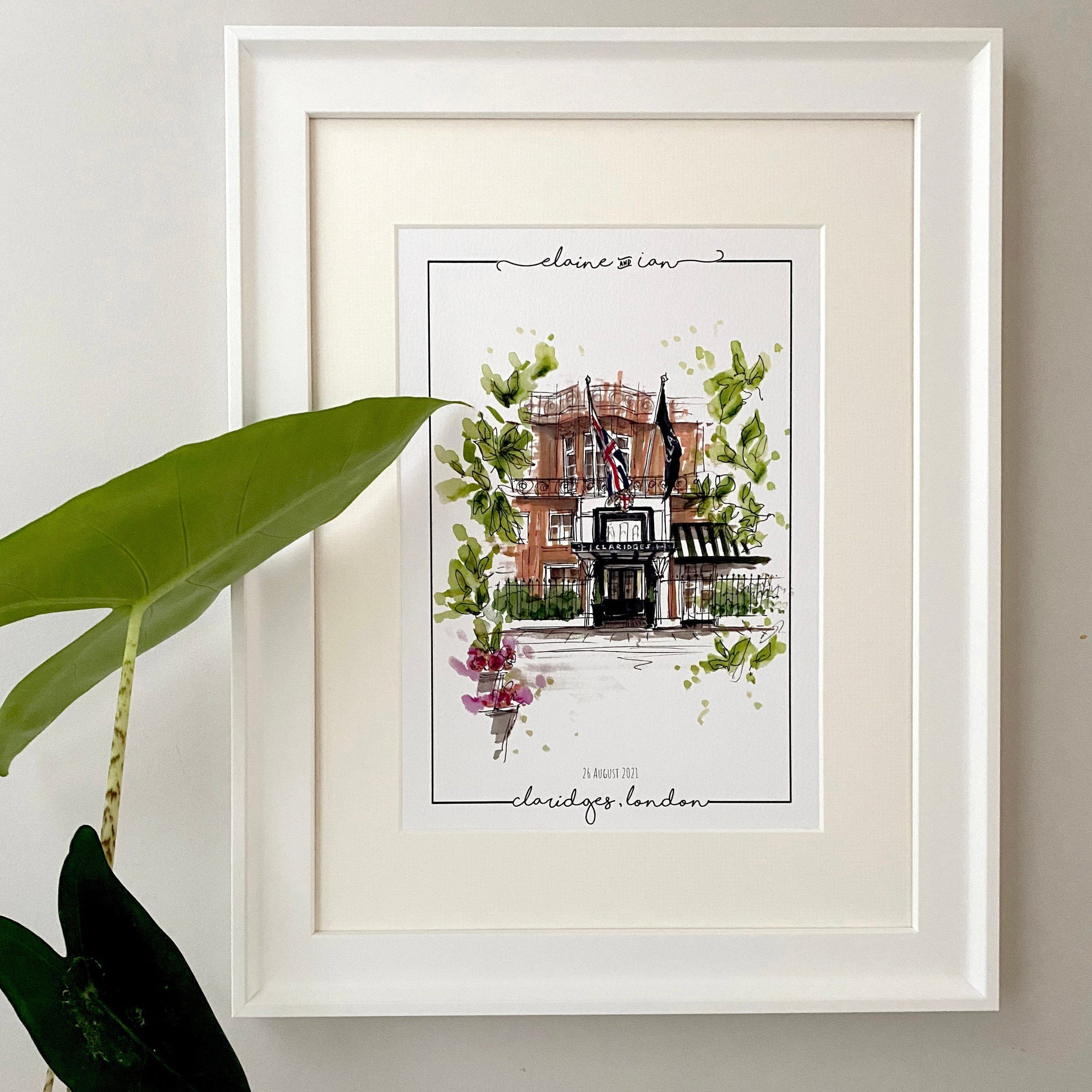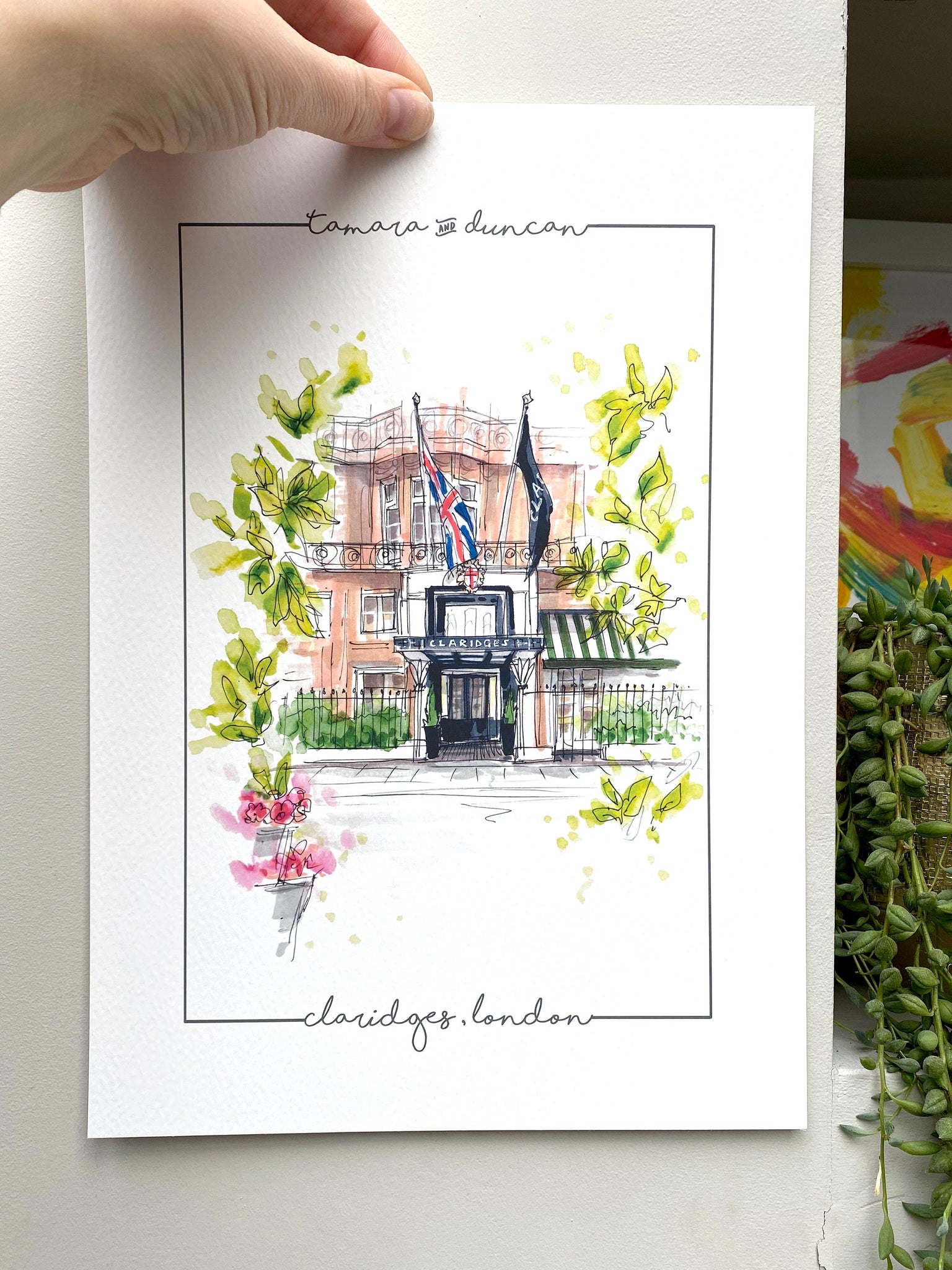 Personalised Claridges London Giclee Art Print - Hand Drawn Print - Made to Order - Claridges Mayfair - Claridges Hotel - Wedding Venue