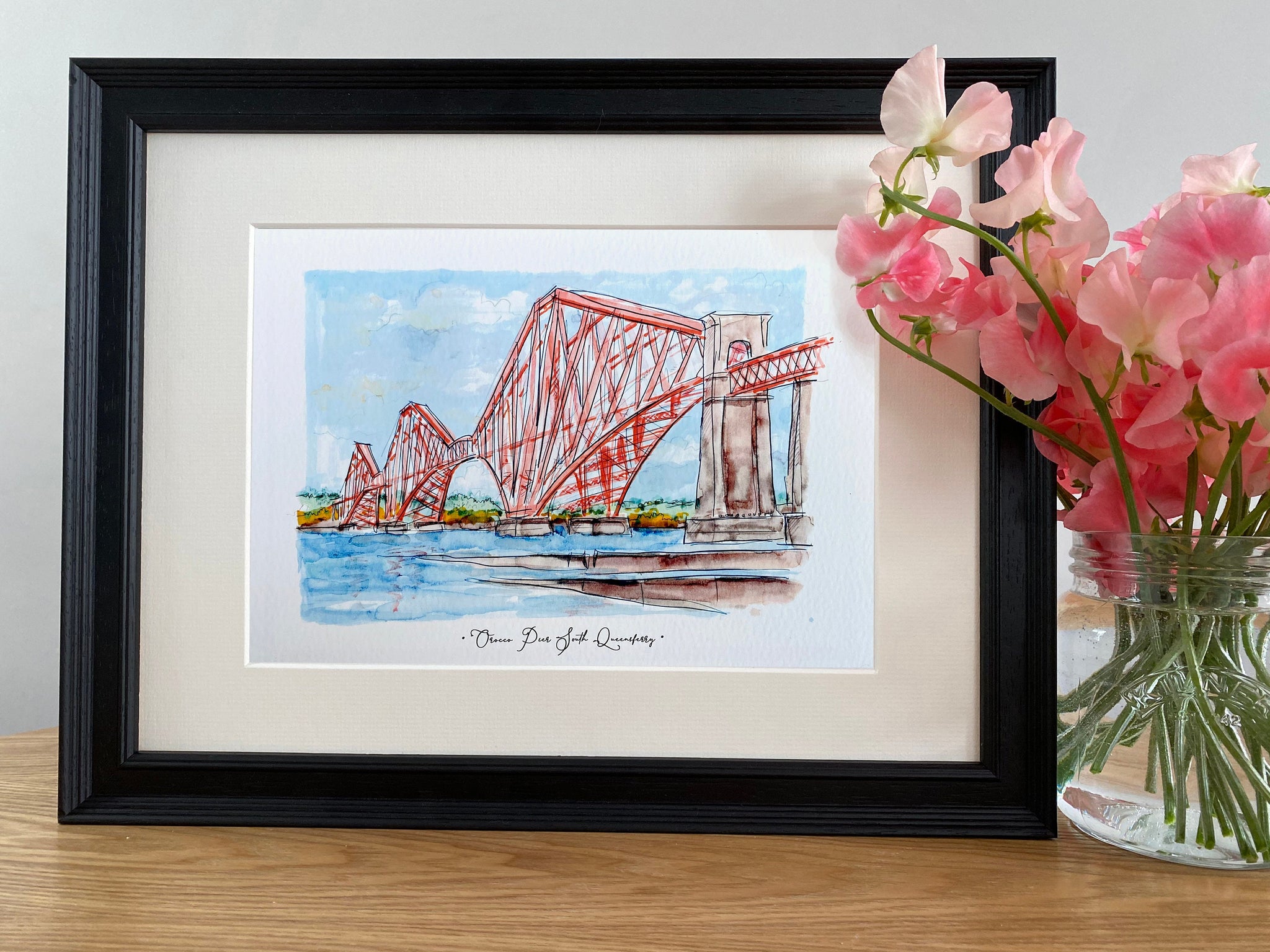 A high-quality print of the iconic Forth Rail Bridge, originally illustrated to celebrate a dear friends wedding in South Queensferry, using Watercolour paints, ink and Fine-liners . What a backdrop to tie-the-knot in front of!