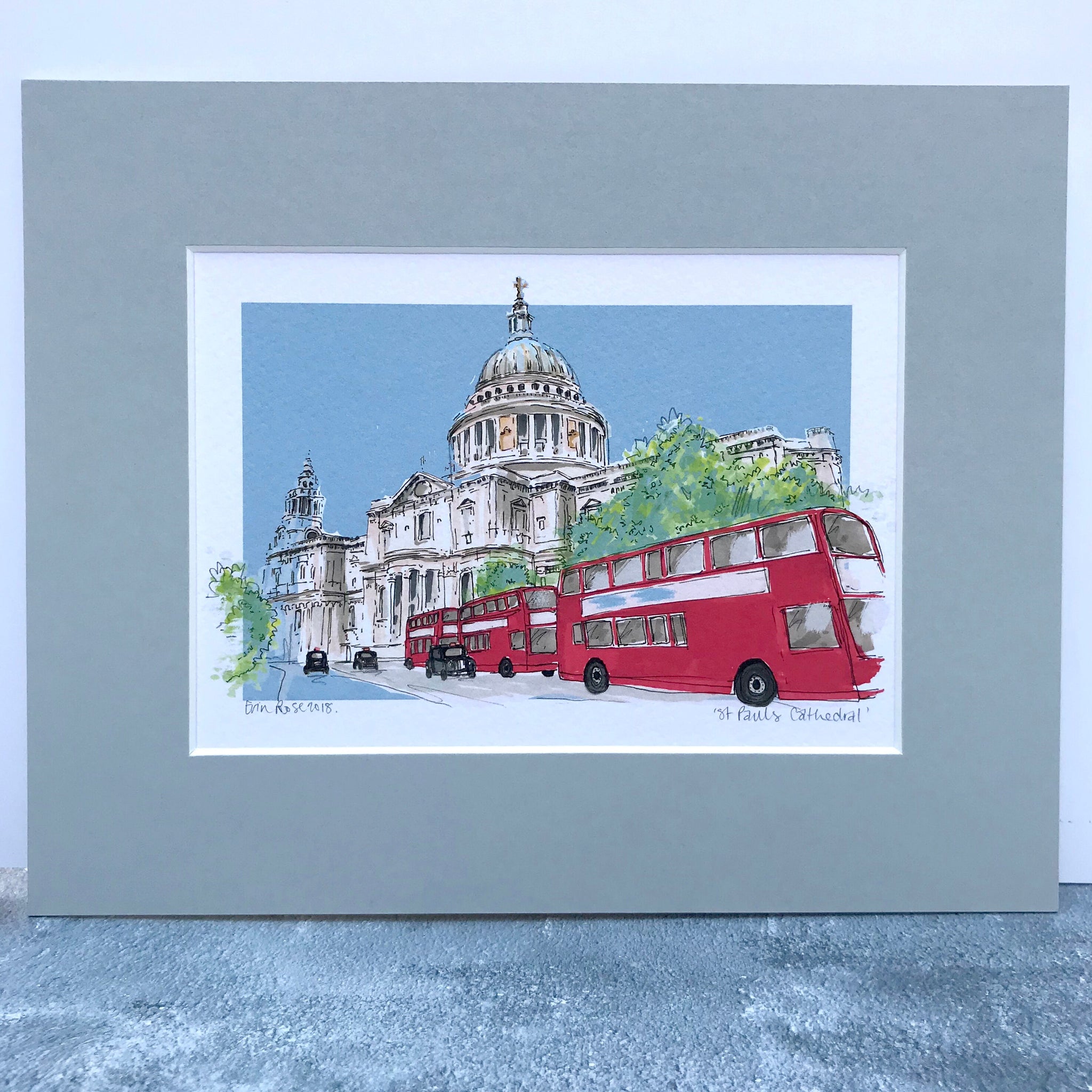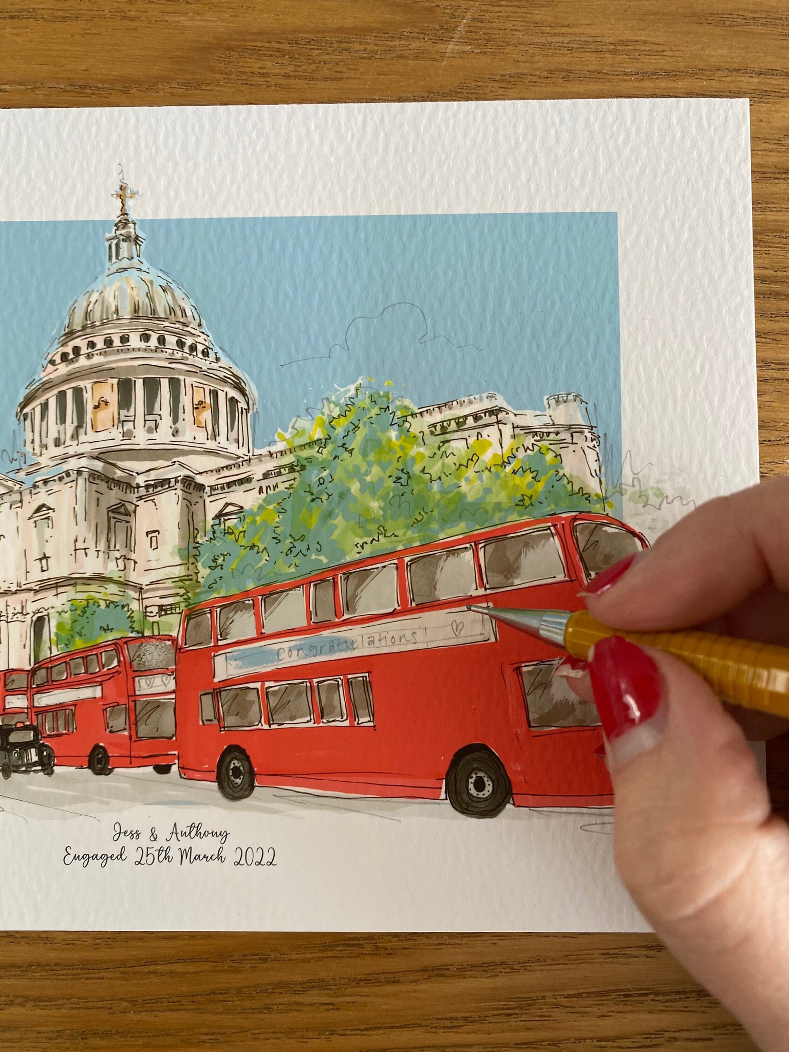 Personalised St Pauls Cathedral London Giclee Art Print - St Pauls Cathedral Illustration - London Red Bus - Iconic London Scene Art Print -