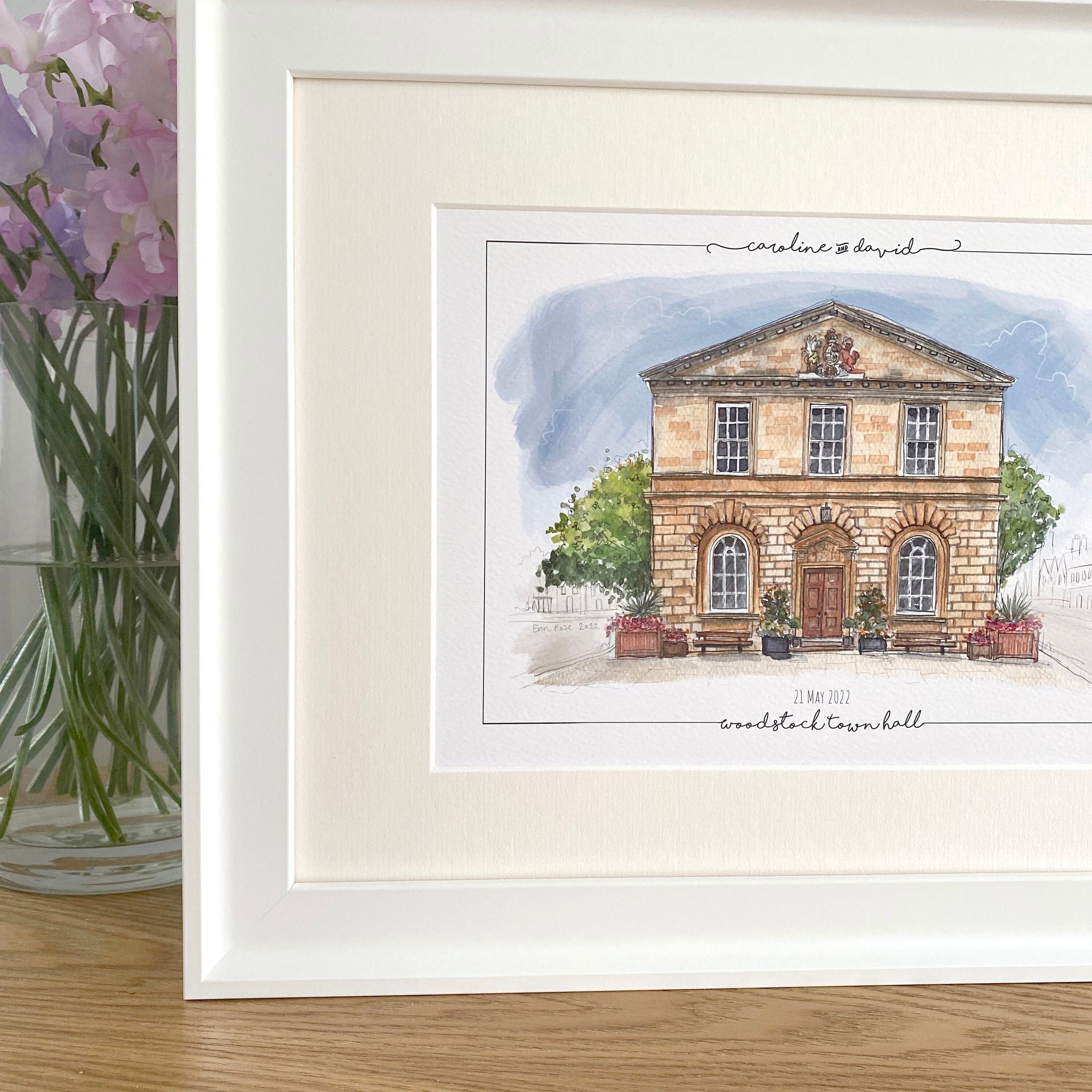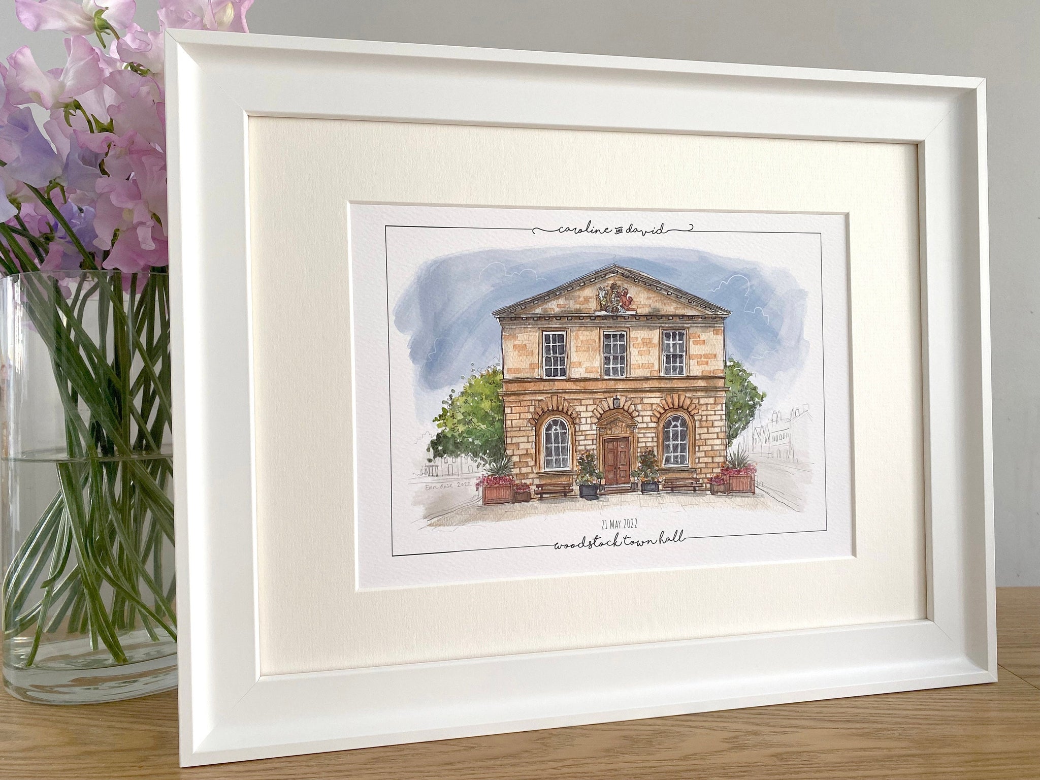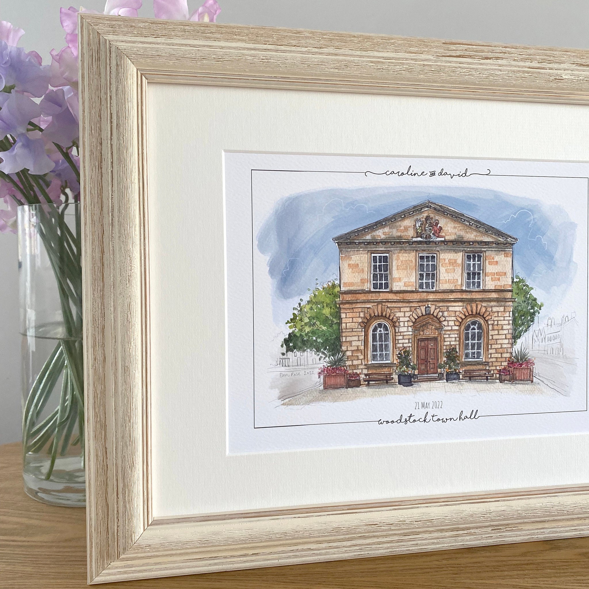 Personalised Woodstock Town Hall Print - Hand Drawn Print - Made to Order - Woodstock Town Hall - Wedding Venue Illustration - Anniversary