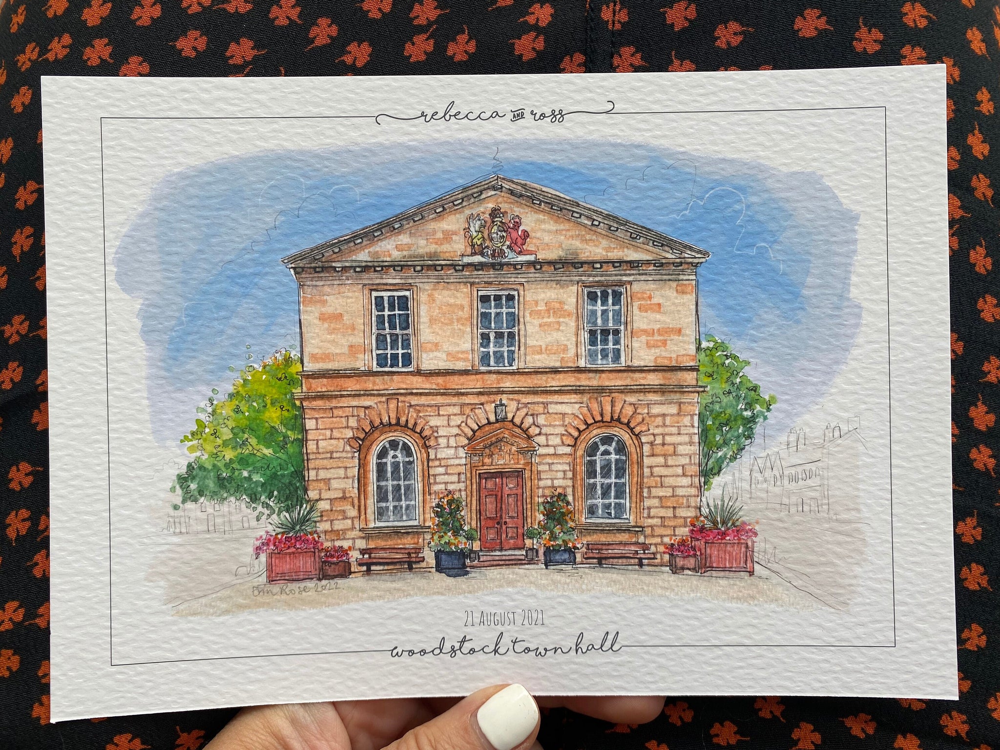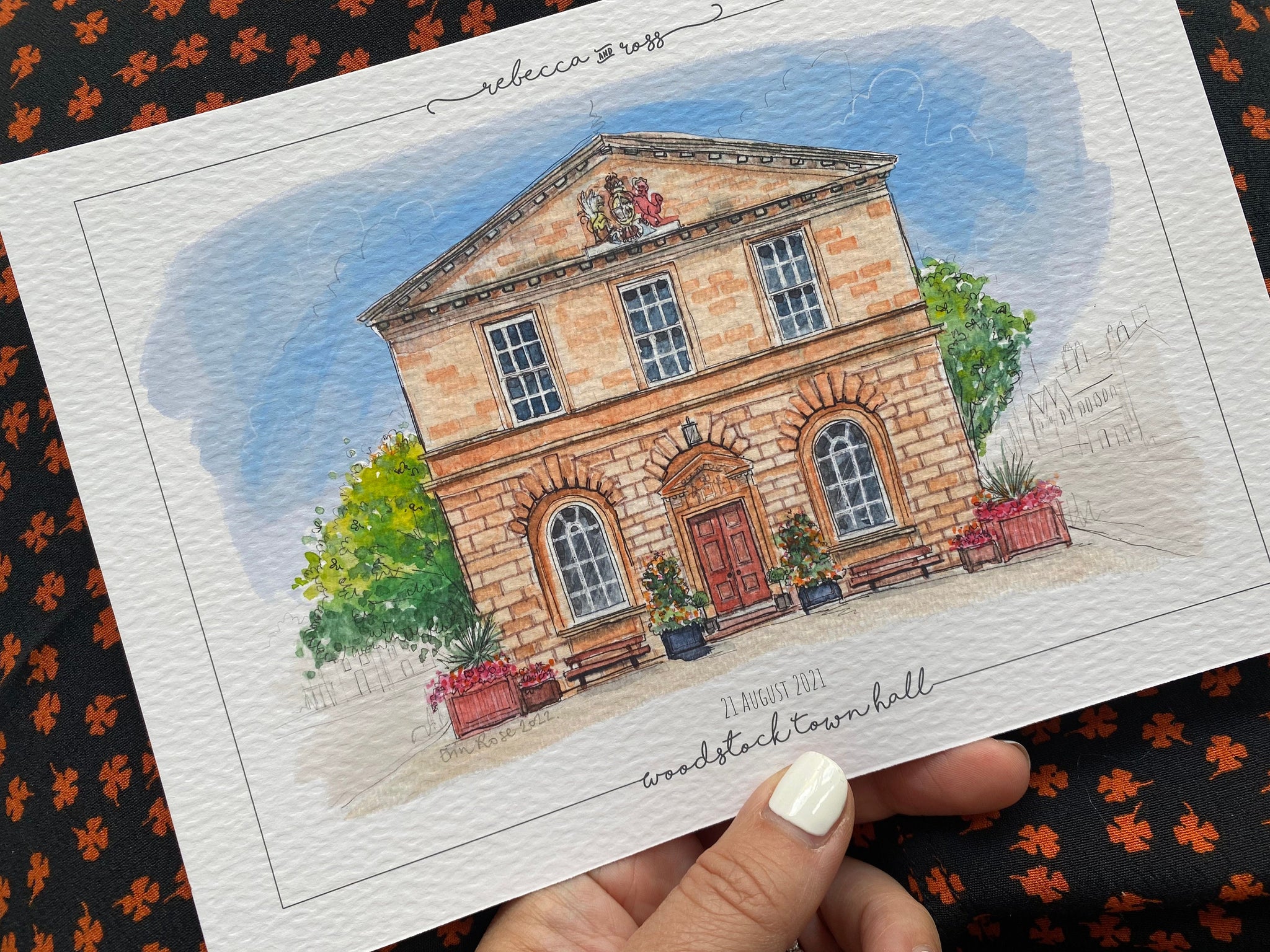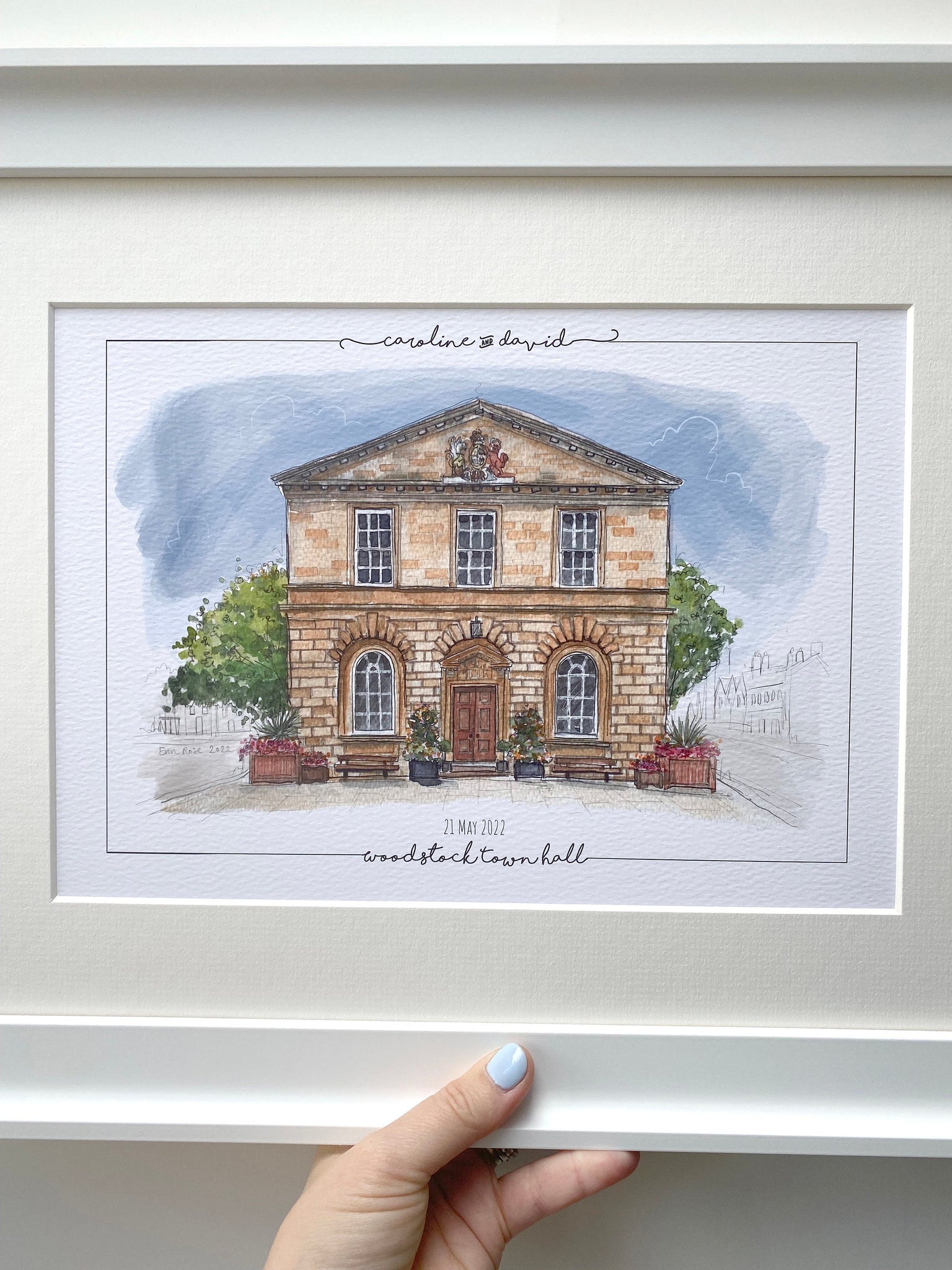 Personalised Woodstock Town Hall Print - Hand Drawn Print - Made to Order - Woodstock Town Hall - Wedding Venue Illustration - Anniversary