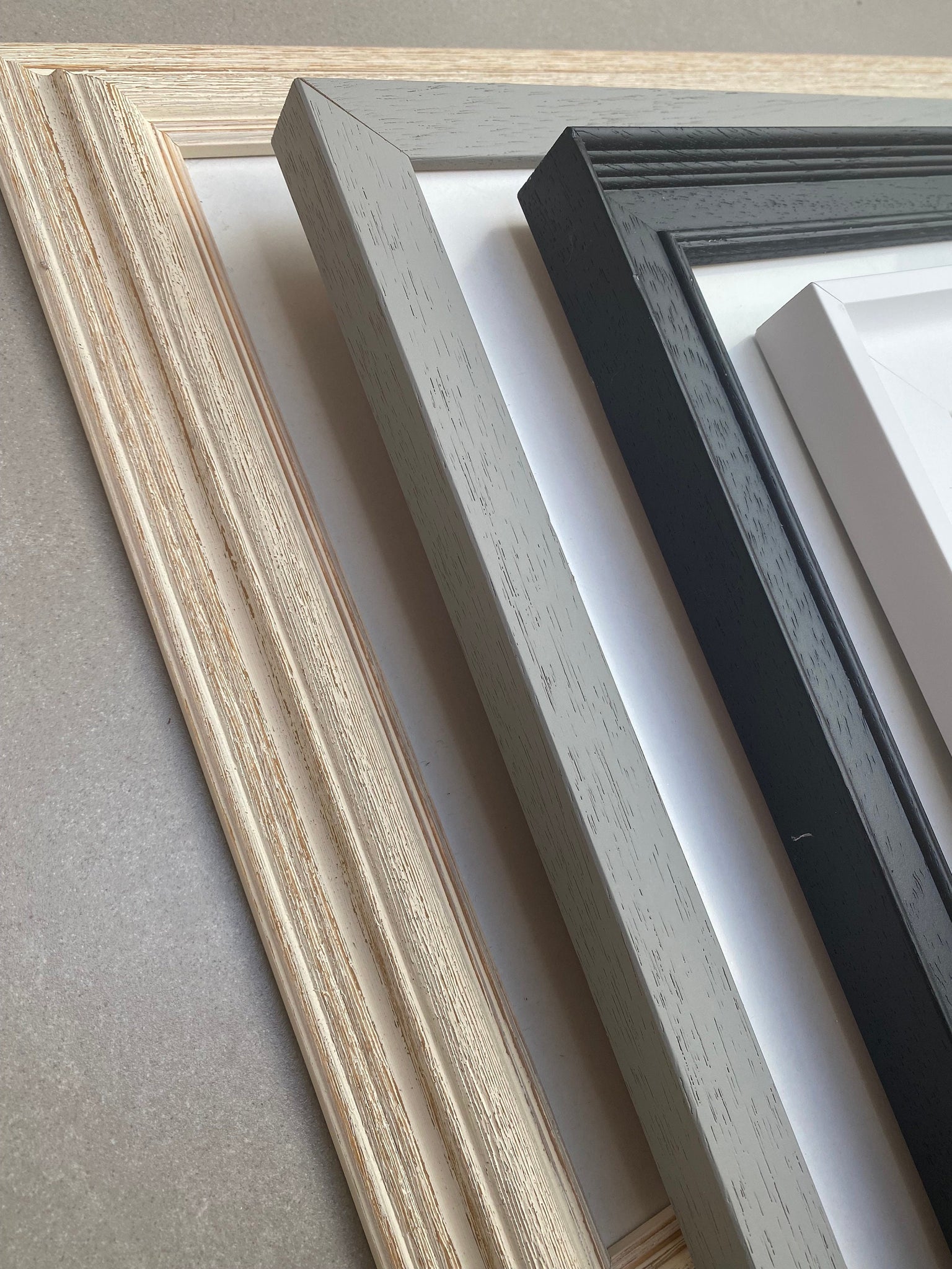 They are available in 4 finishes, White, Black, Stained Wood and Grey.