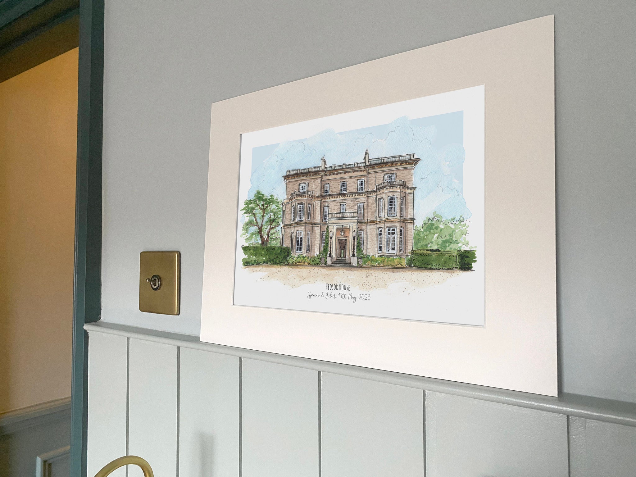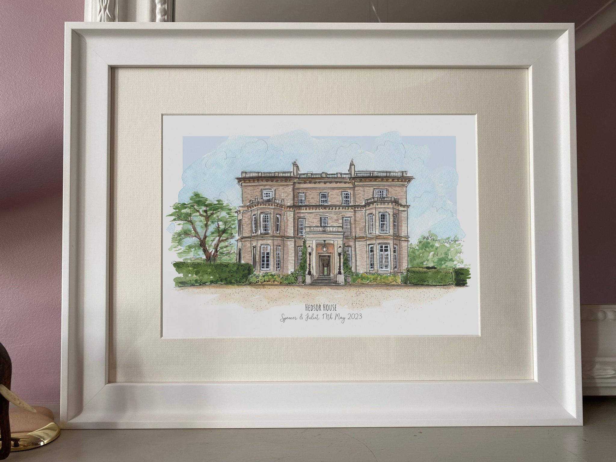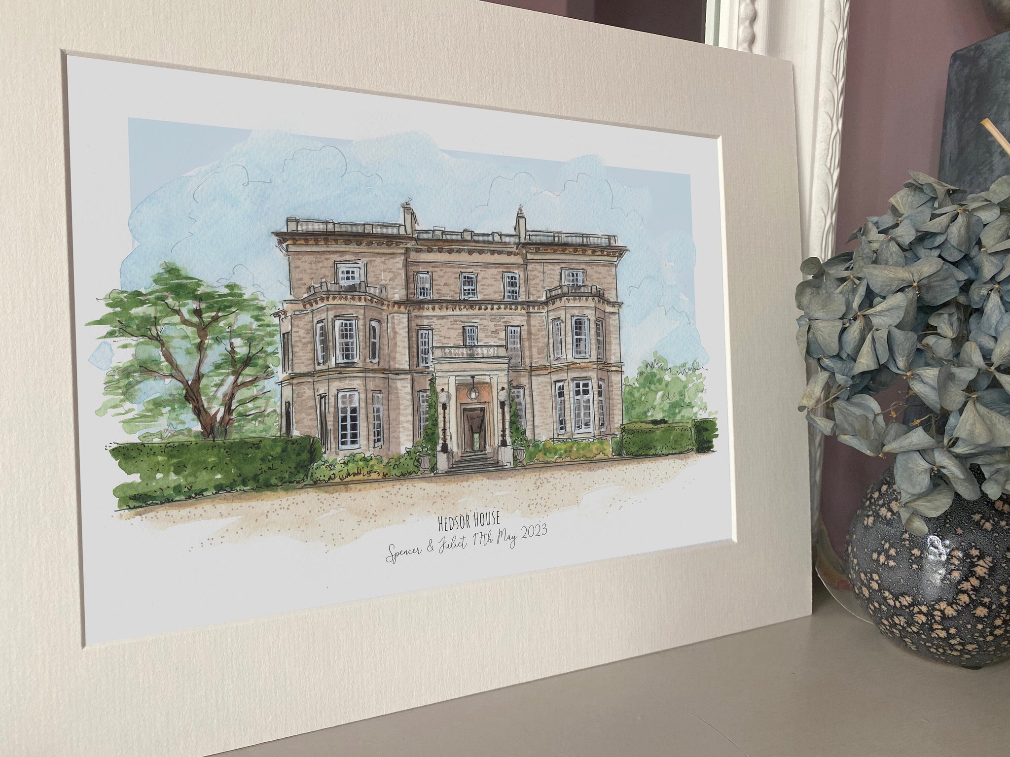 Hedsor House Wedding Illustration - Anniversary Art - Hedsor House Watercolour Giclee Art - Buckinghamshire Watercolour - Hand Painted Print