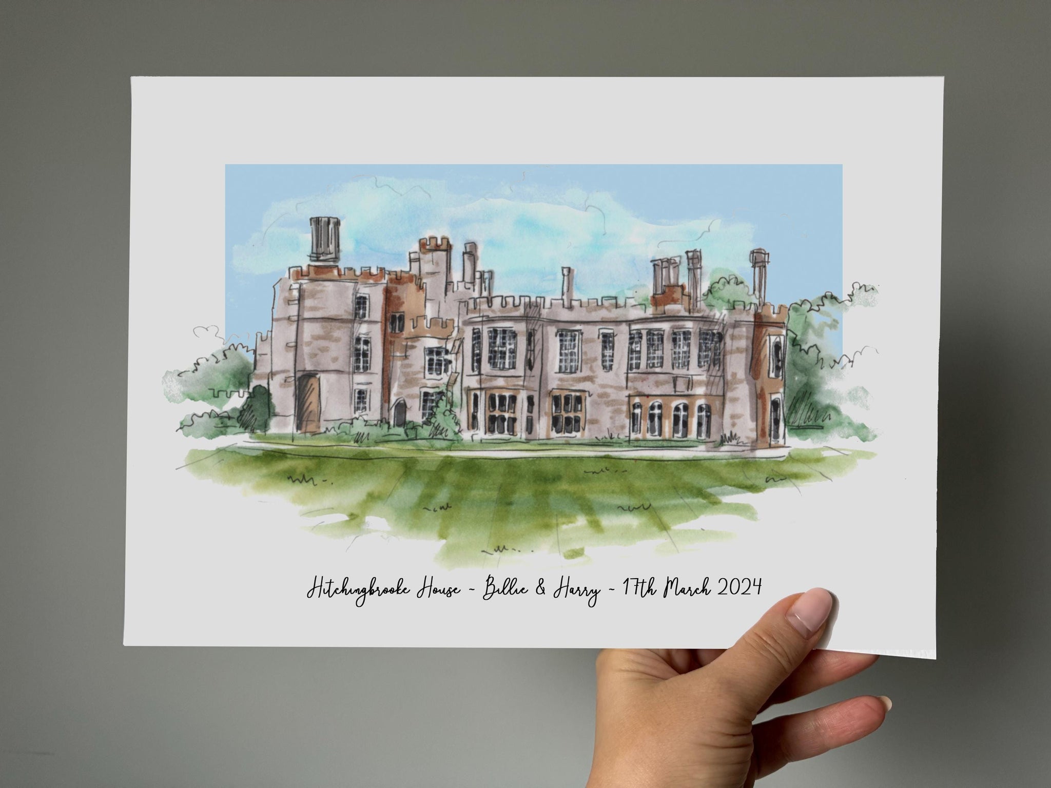 This illustration of Hitchingbrooke House, now part of Hitchingbrooke School in Cambridgeshire , England, was lovingly hand drawn and painted with inks and watercolours, then made into a high quality Giclee print. Perfect to celebrate a recent Graduation, or anyone who holds a special place in their heart for this beautiful College.