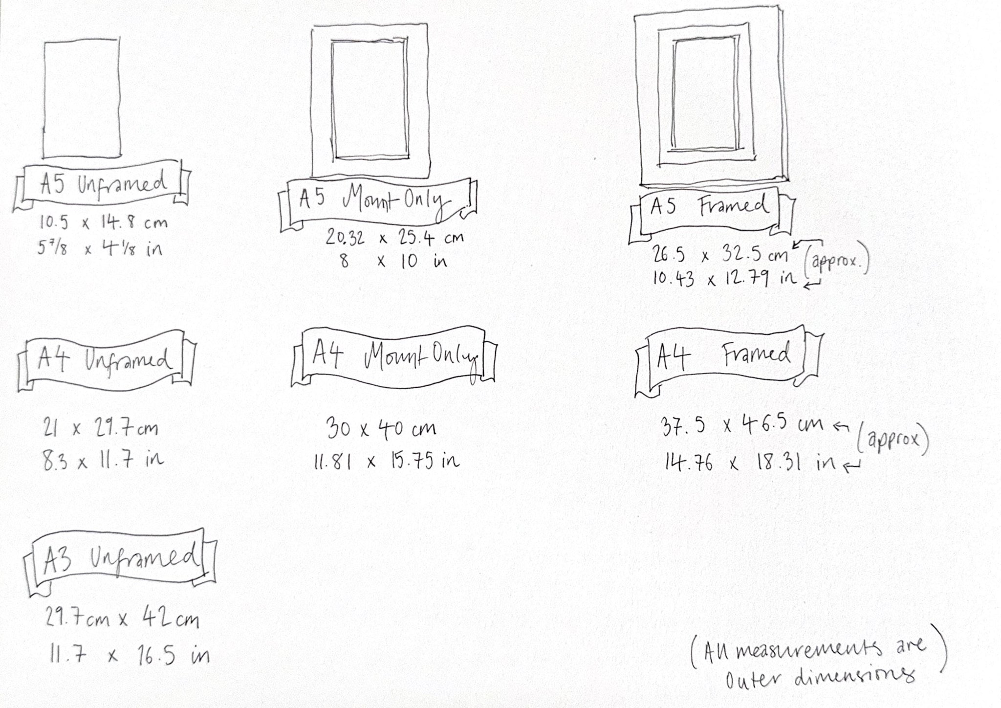 My mounts are Daler Rowney, and my wooden frames come in a choice of four colours/ finishes to suit different tastes, and are all constructed to the highest standards here in the UK specifically for me, to perfectly house the artwork within.
