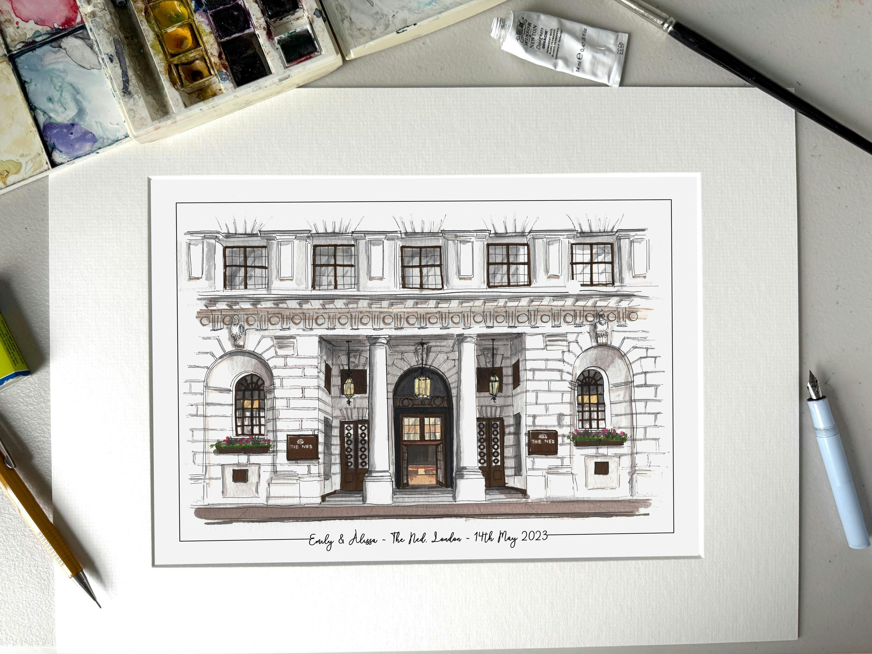 The Ned Hotel London Personalised Giclee Art Print - The Ned Watercolour Illustration - Personalised Wedding Gift - The Ned Hotel London