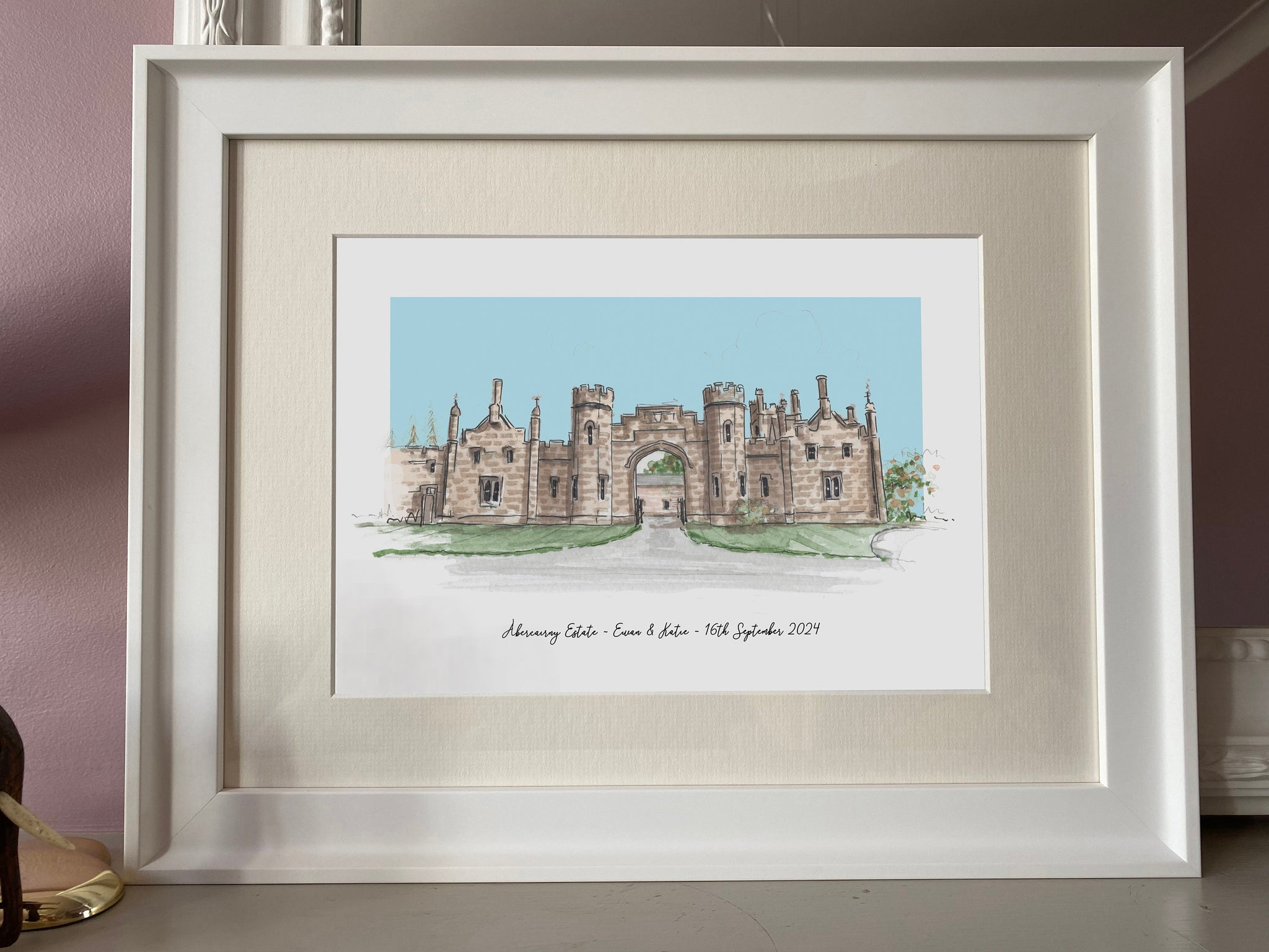 This illustration of the popular Abercairny Estate in Scotland was lovingly hand drawn and painted with inks and watercolours, then made into a high quality Giclee print. Perfect to celebrate any special occasion at this historic venue.