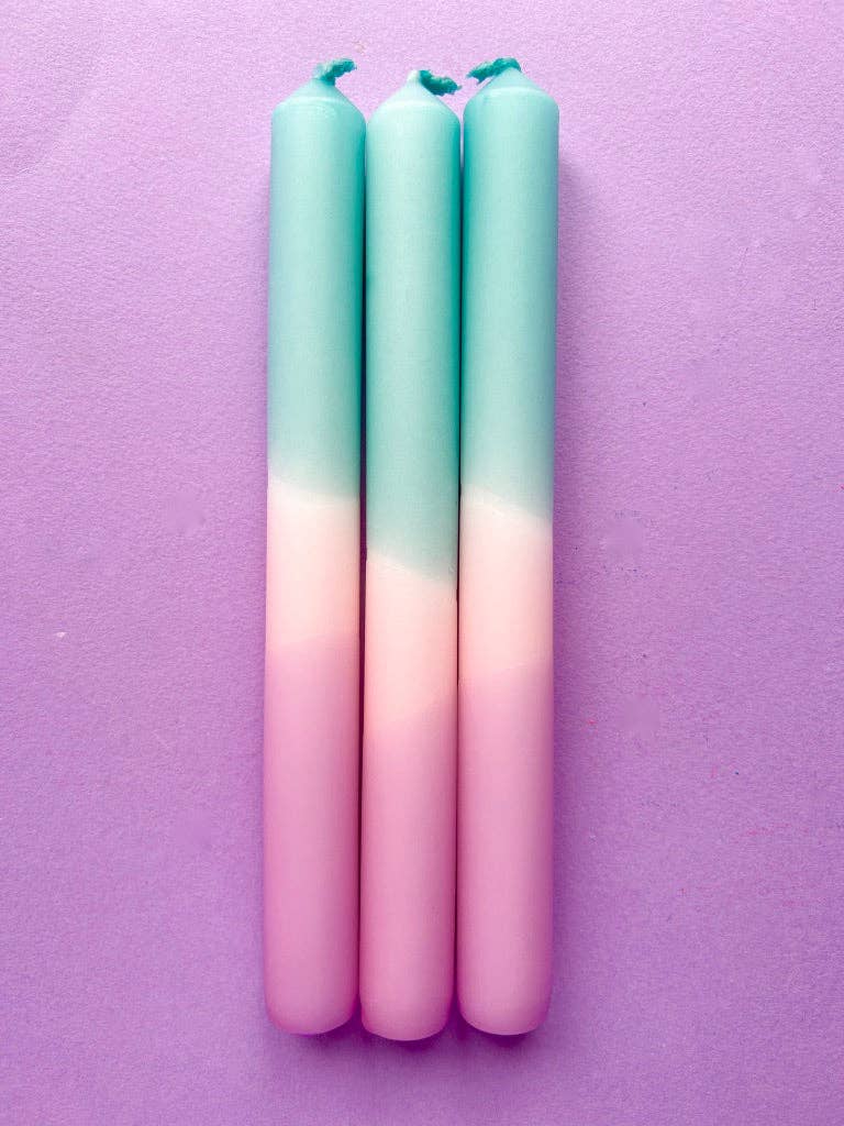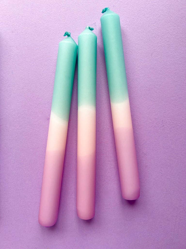 Each trio of candles is hand dipped in the Surrey Hills and every set is unique - the colour combination is always the same but the pattern may vary slightly.