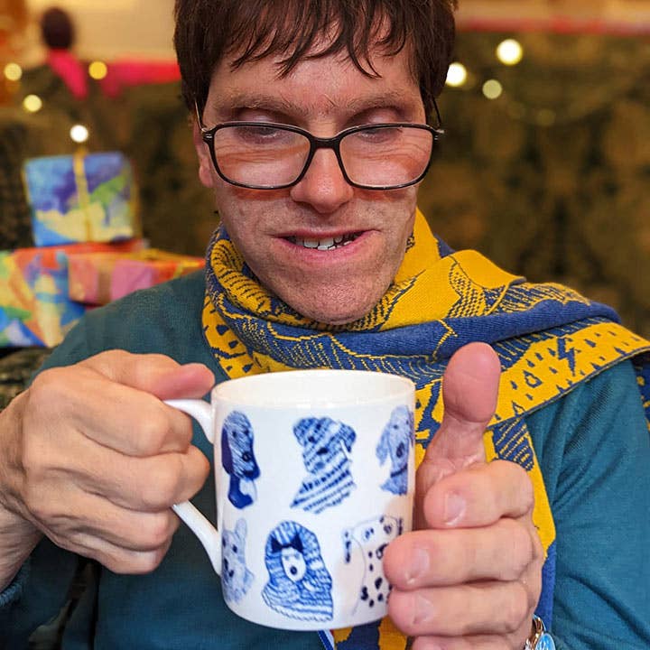 A dog lovers delight, this fine bone china mug features artwork created by adults with complex neurodiverse & physical support needs in supported art sessions. Each dog is full of canine character guaranteed to bring smiles to every sip. Decorated in the UK with a bonus blue dog motif on the inner rim, this is an ideal dog themed gift for dog fans, art lovers & good-cause supporters everywhere!