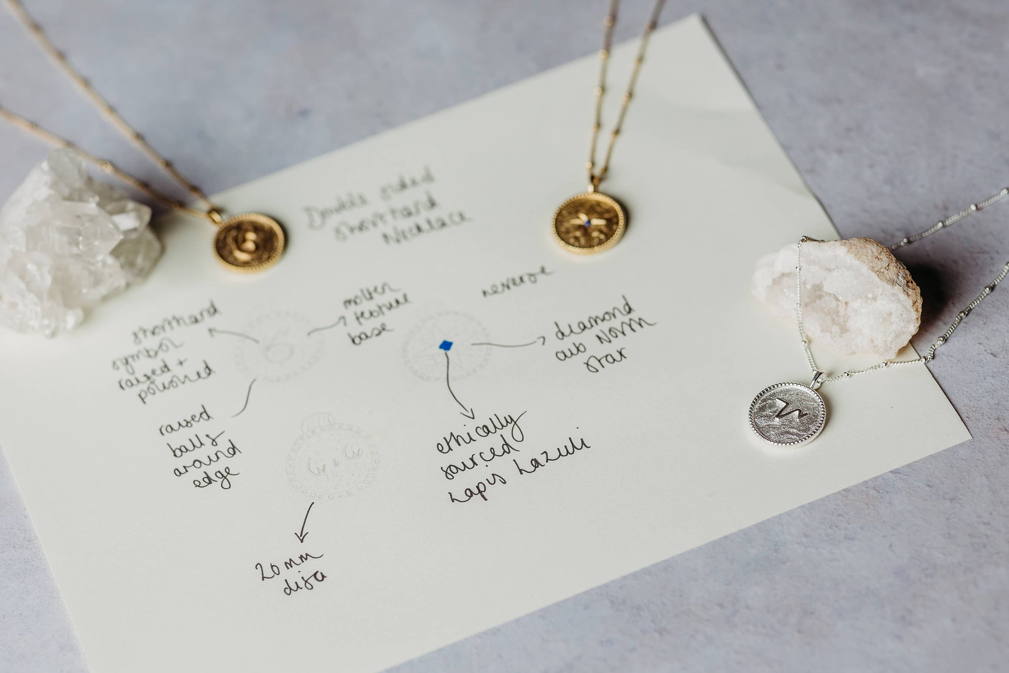 The Brave Gold Necklace offers a unique twist on the classic gold coin pendant, combining meaningful design with elevated luxury. Loved by the press, influencers, and your customers, this necklace features a textured gold pendant with a powerful dual design. One side showcases the word Brave transcribed into a Shorthand symbol, while the other side features a North Star with an ethically sourced lapis lazuli gemstone—a symbol of guidance, strength, and resilience. Made with premium materials, the pendant is crafted from 100% certified recycled 925 silver and plated with 14k gold vermeil—2.5 microns thick, which is 5 times thicker than standard gold plating.
