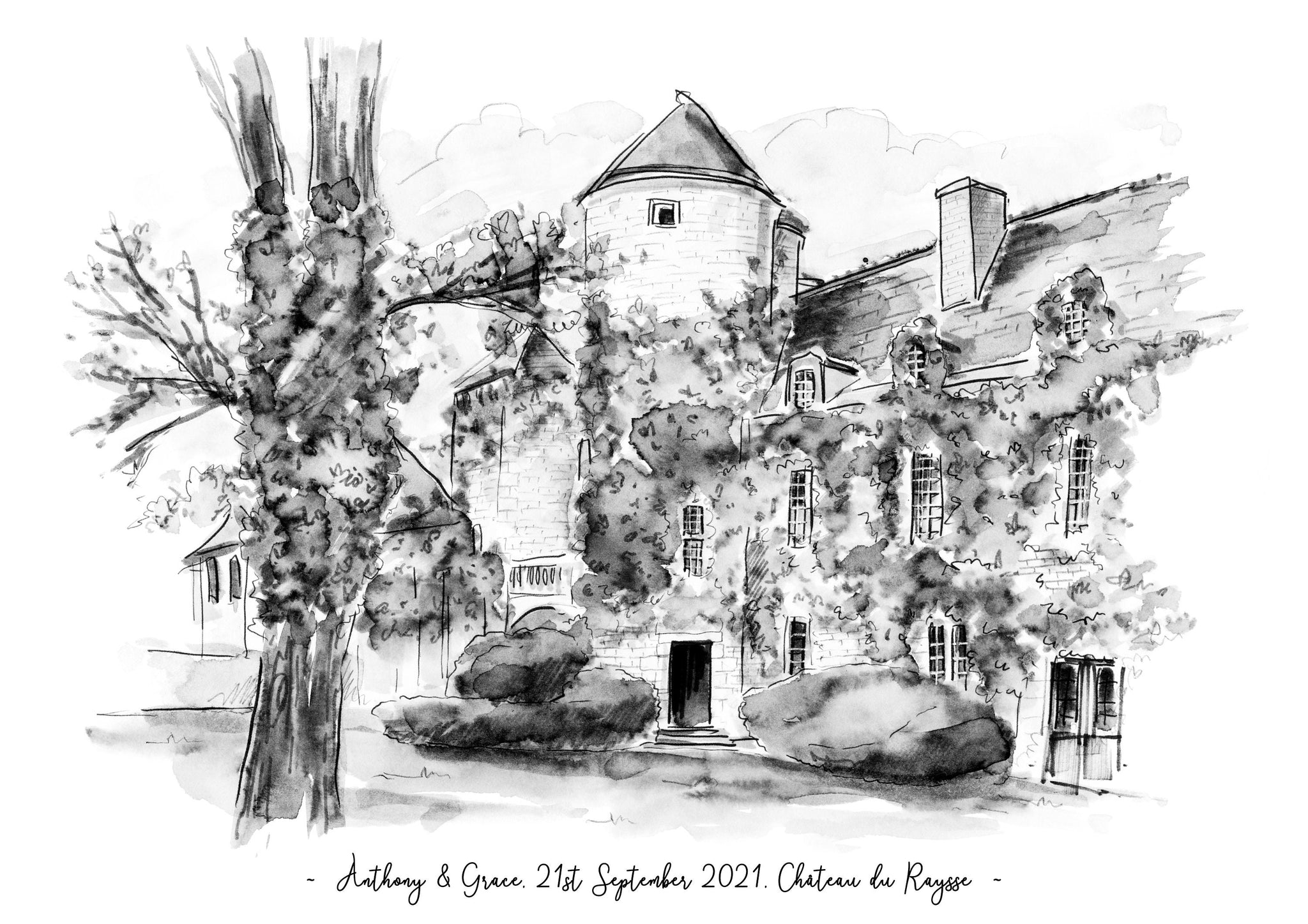 Château du Raysse Art Print - Watercolour Hand Painted Château du Raysse - Dordogne Wedding Venue Print - Chateau Wedding Venue Illustration