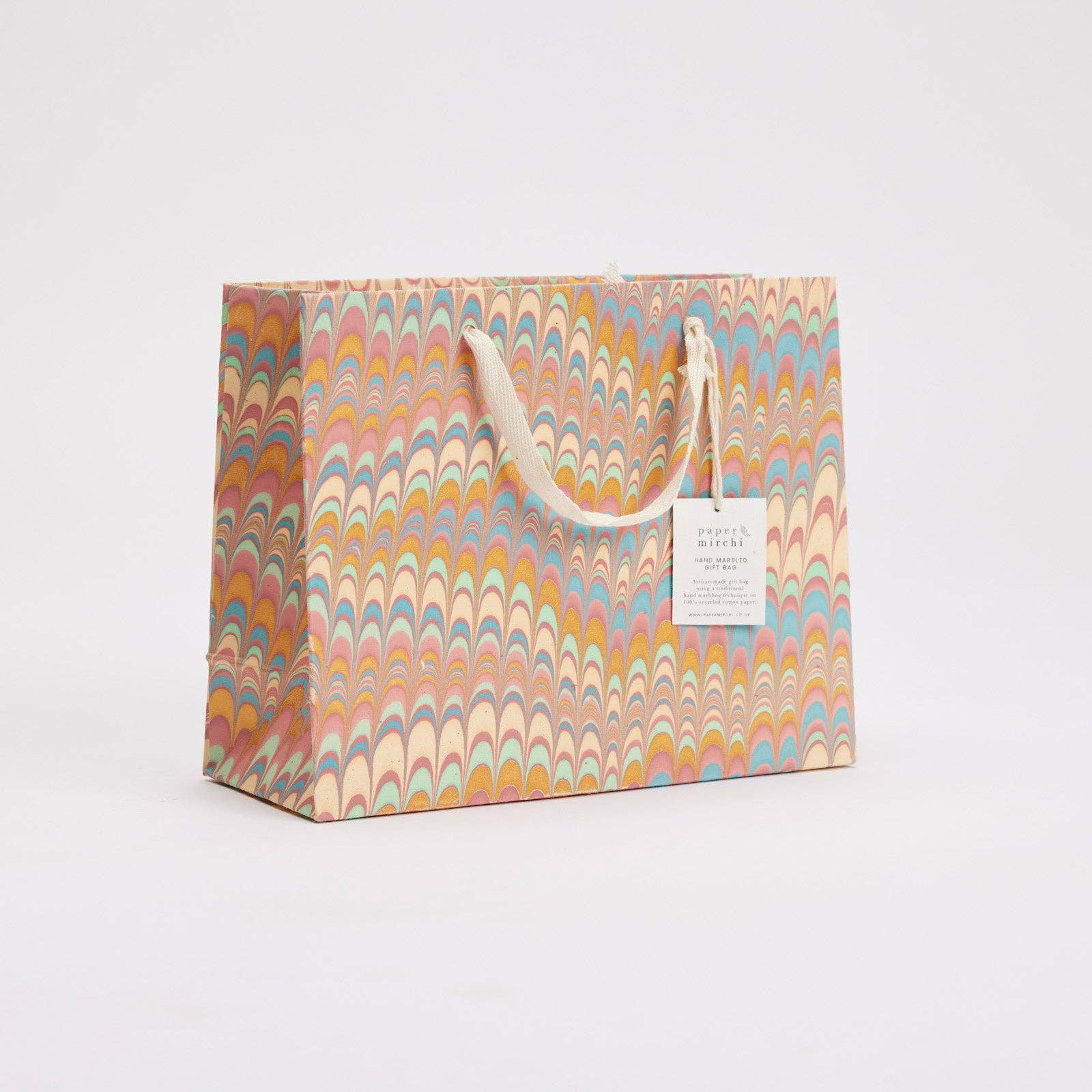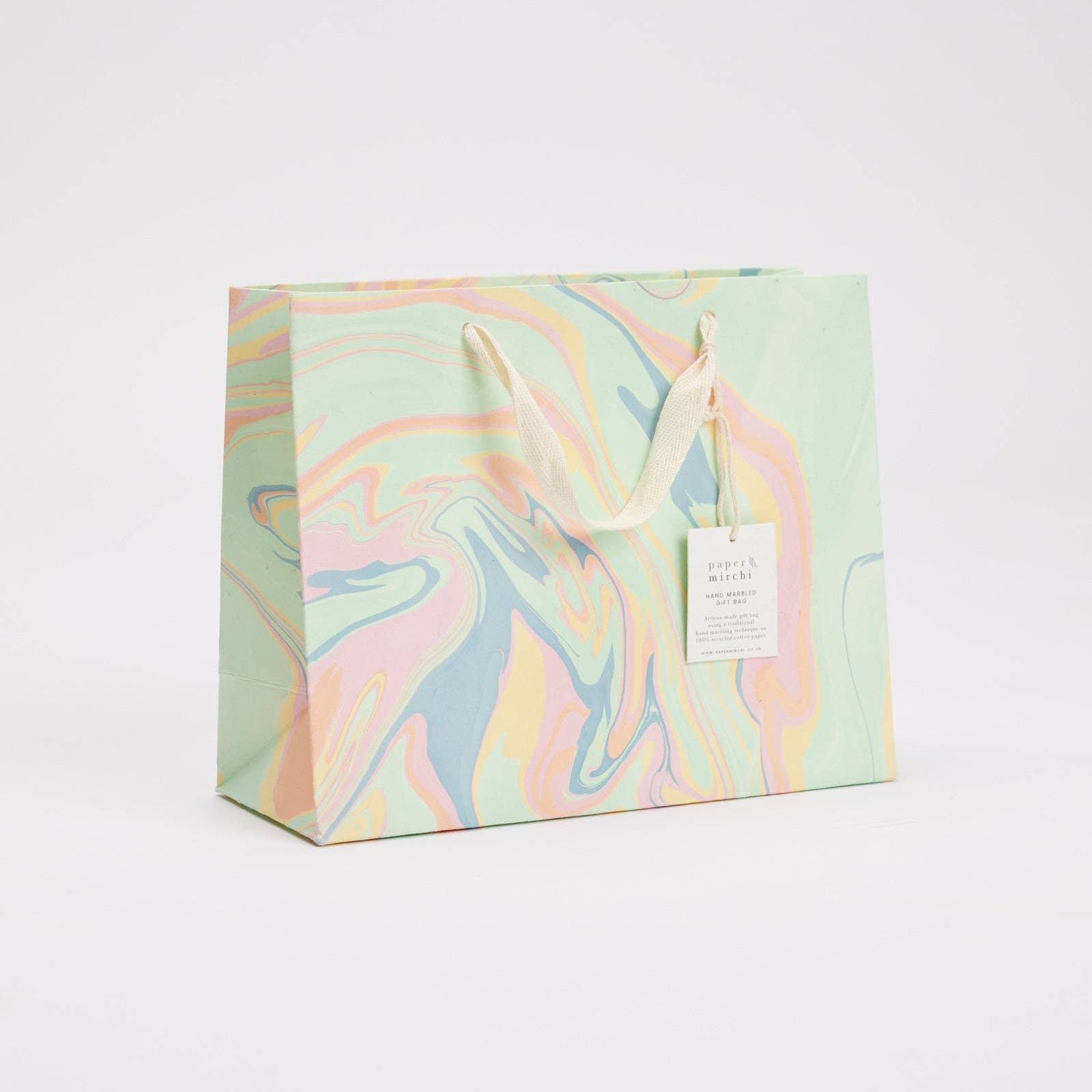 Our hand marbled gift bags are made from a strong 250gsm recycled cotton card paper in colours and designs complementing the gift wrap range.