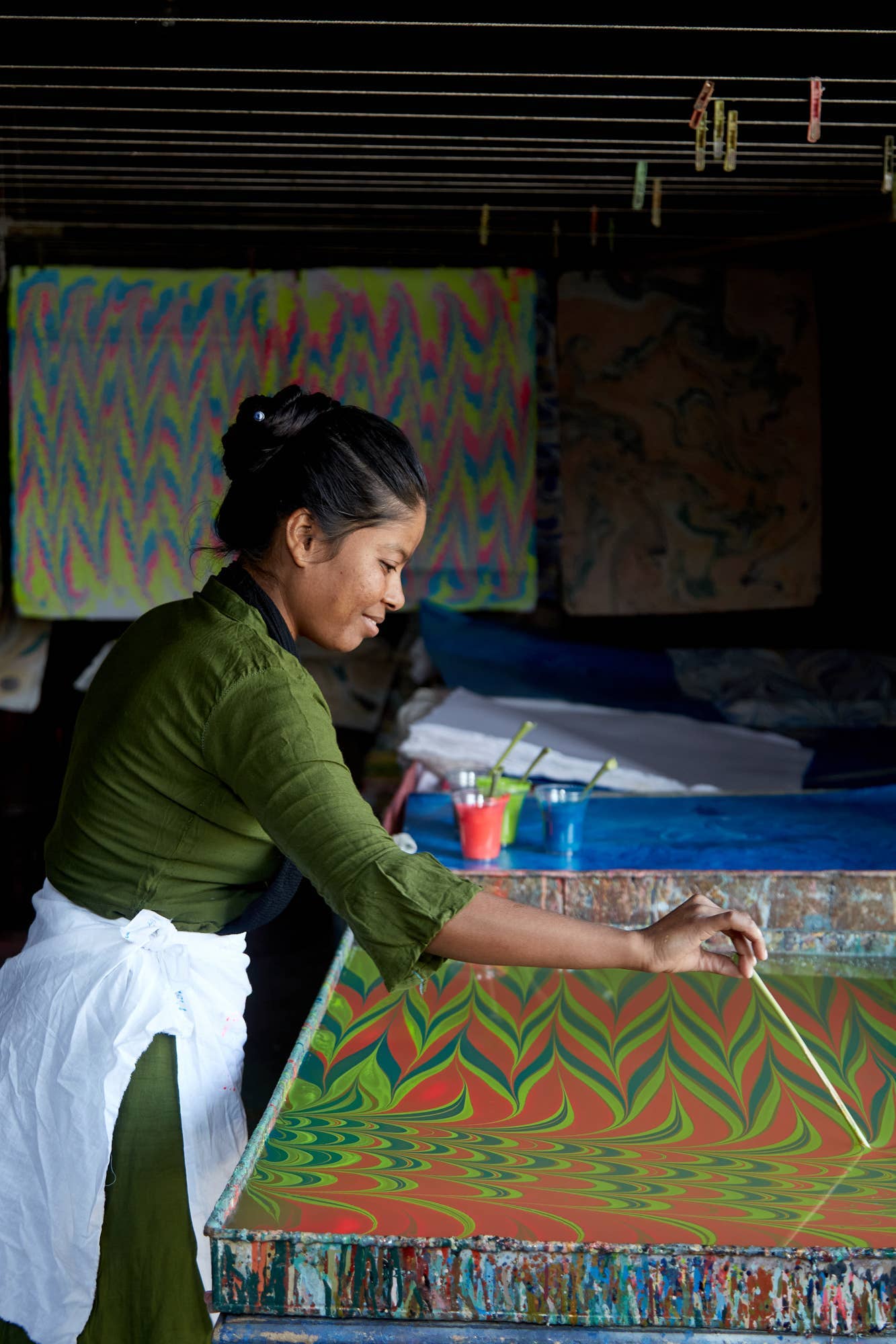 Our hand marbled gift bags are made from a strong 250gsm recycled cotton card paper in colours and designs complementing the gift wrap range. The bags are hand marbled using traditional techniques, and are not digitally mass produced. The cotton rope handles enhance the artisanal look of the bags and the matching swing tag carries a short blurb about the story behind the bags. Sold in a multi design pack of 6 bags (i.e. 3 designs x 2units per pack), offering the retailer more variety per pack. This pack contains: Waves Neon - 2 units Stone Neon - 2 units Peacock Neon - 2 units. Size - Medium H20 X W25 X D10cm 100% recycled cotton paper.