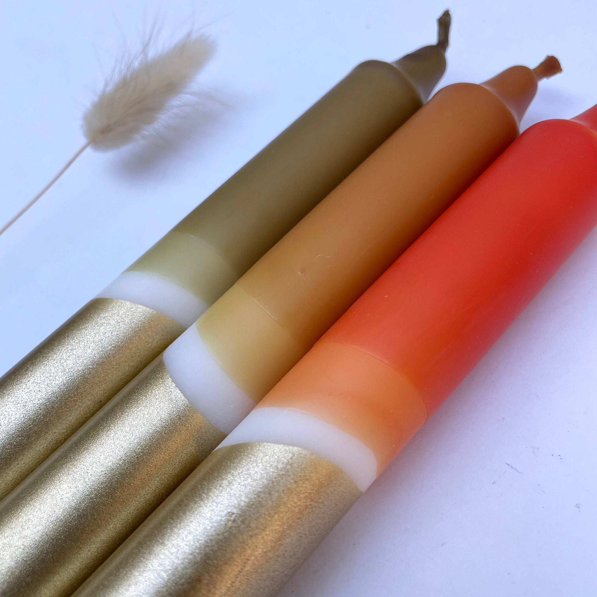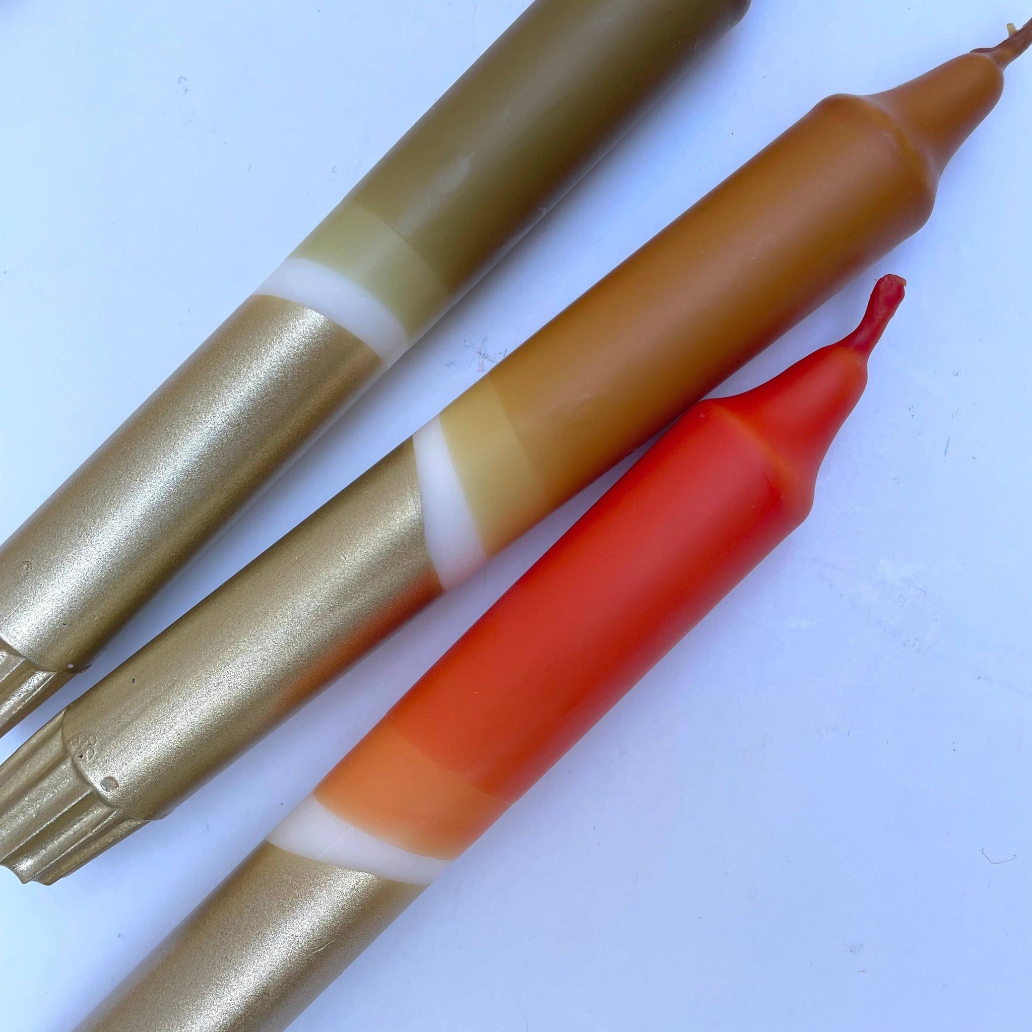Olive, Caramel, Rust & Gold Dip Dyed Dinner Candles