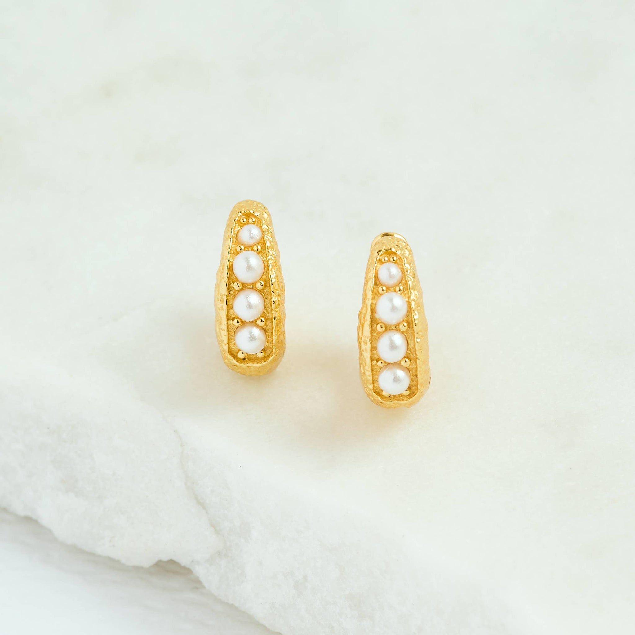 Pearl Antique Gold Huggie Hoop Earrings | Gold Earrings