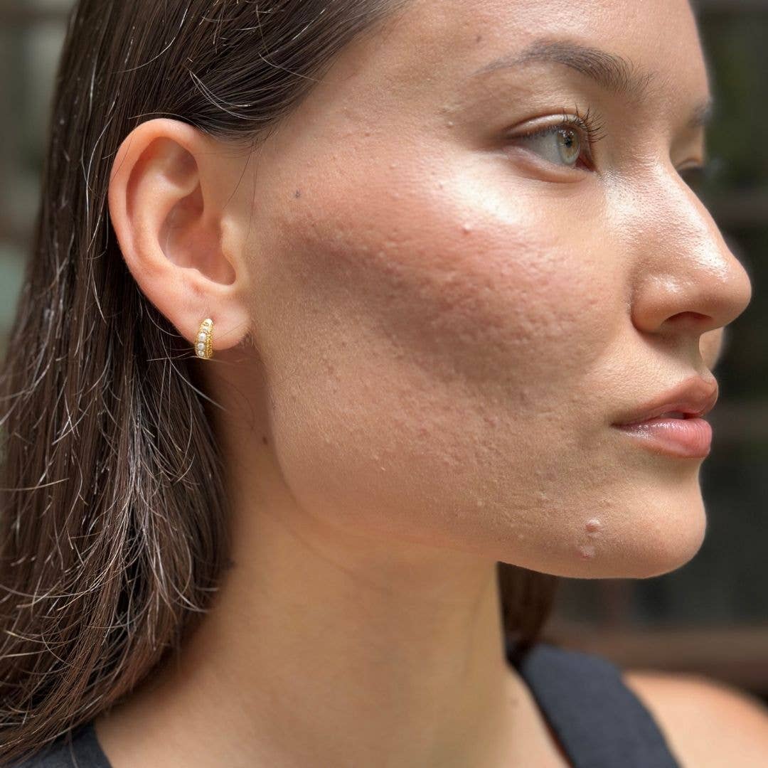 Work, party, even sleep in them, these mini pearl hoops are made for living in. The textured finished make them look and feel luxurious, made with ethical recycled precious metals for long-lasting every day wear.