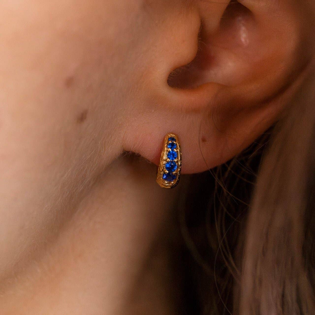 Sapphire Antique Gold Huggie Hoop Earrings | Mini Gold Hoops