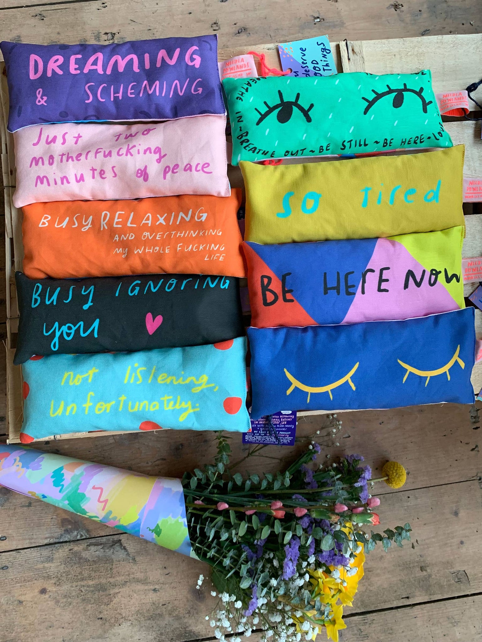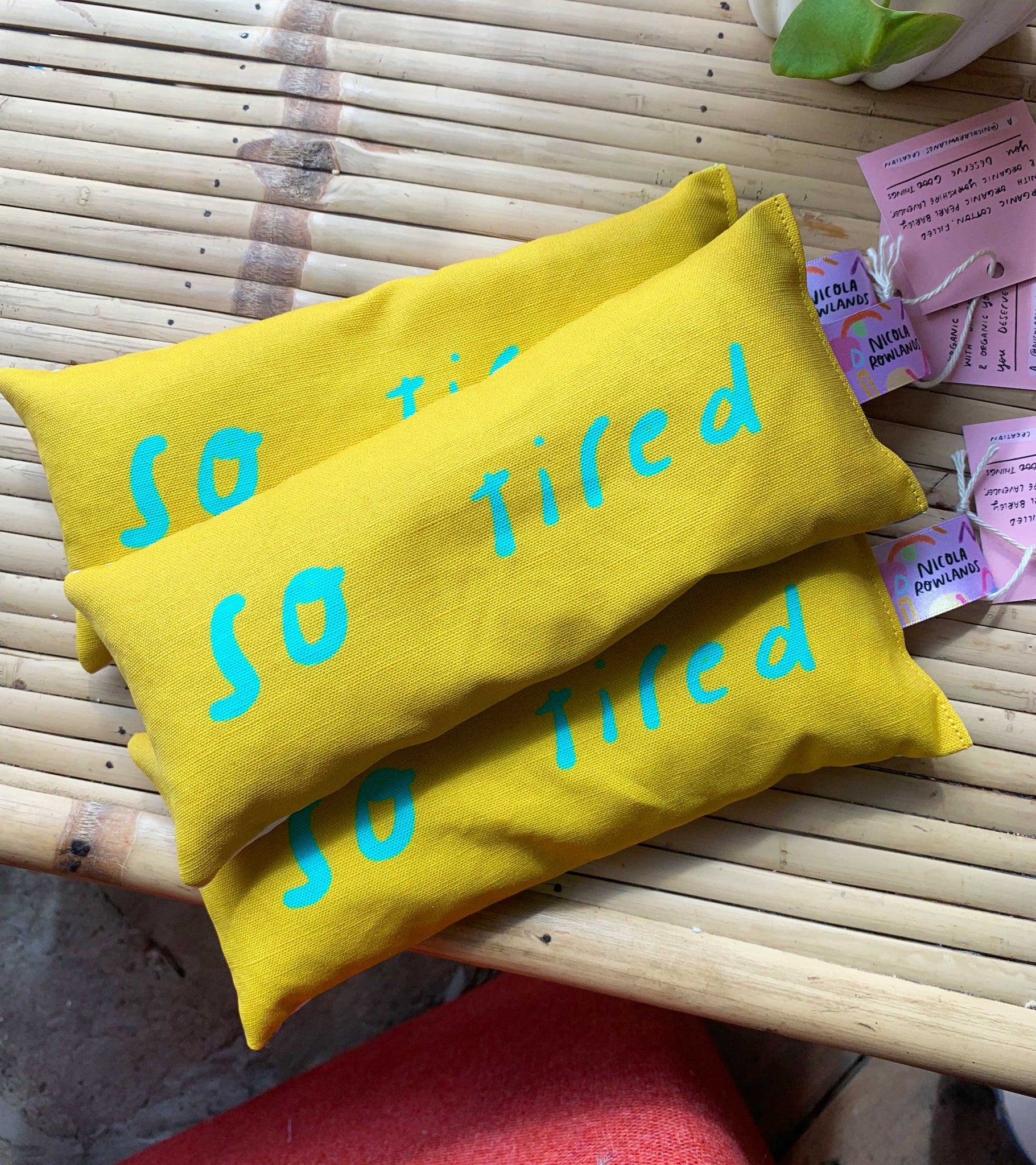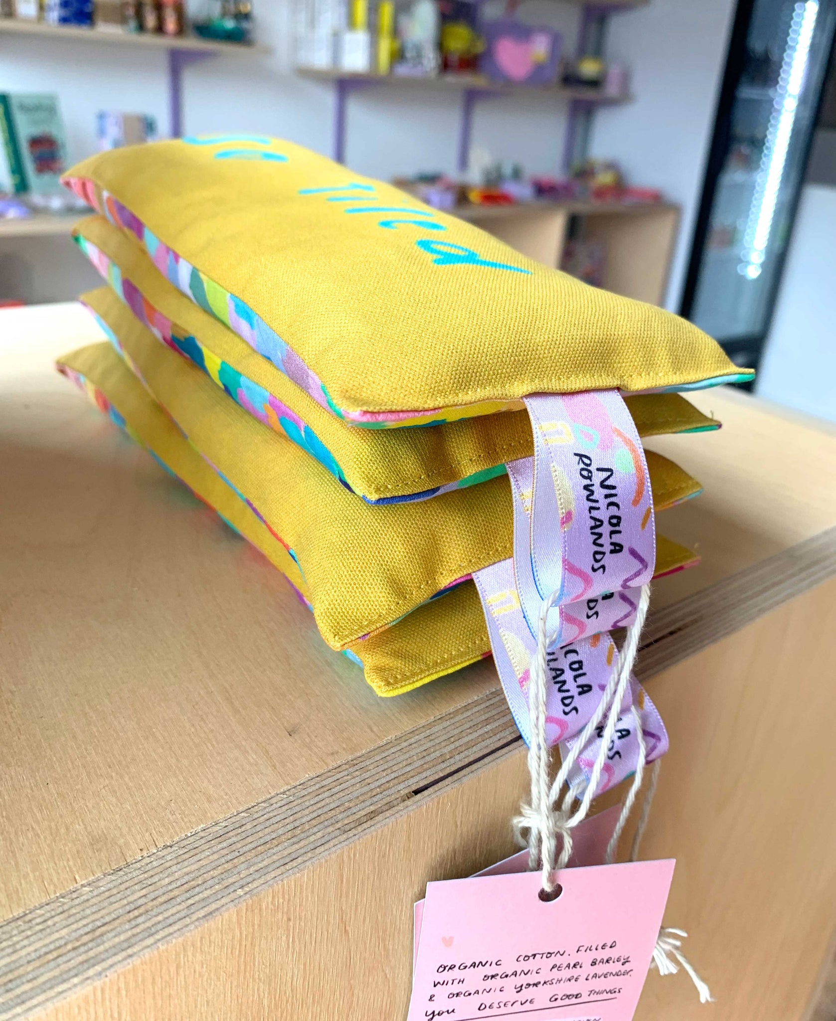 Organic fabric hand sewn in Manchester UK. Filled with organic pearl barley and Yorkshire grown organic lavender. Backing fabric designed by Nicola also and is unique to each bag.