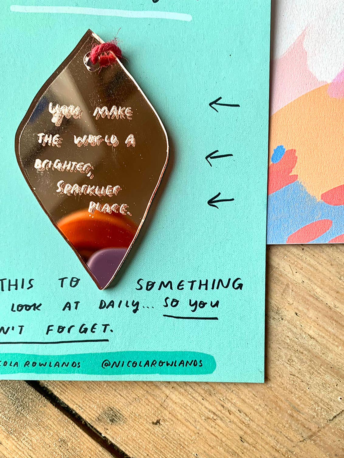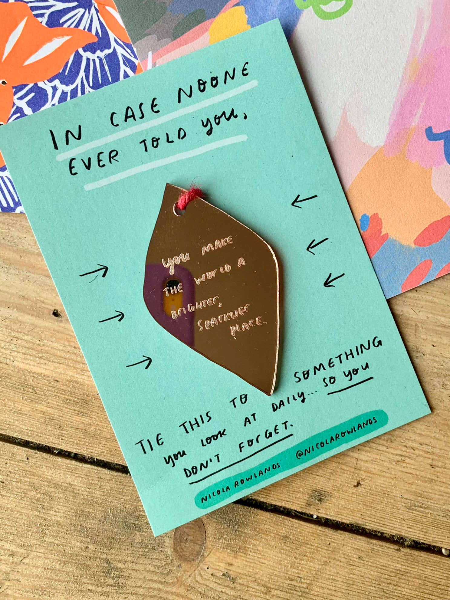 A little charm that says just the right thing on a sweet backing card that says just the right thing.
